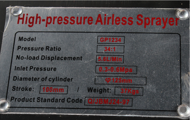 Pneumatic high-pressure airless sprayer GP1234 is suitable for industries: